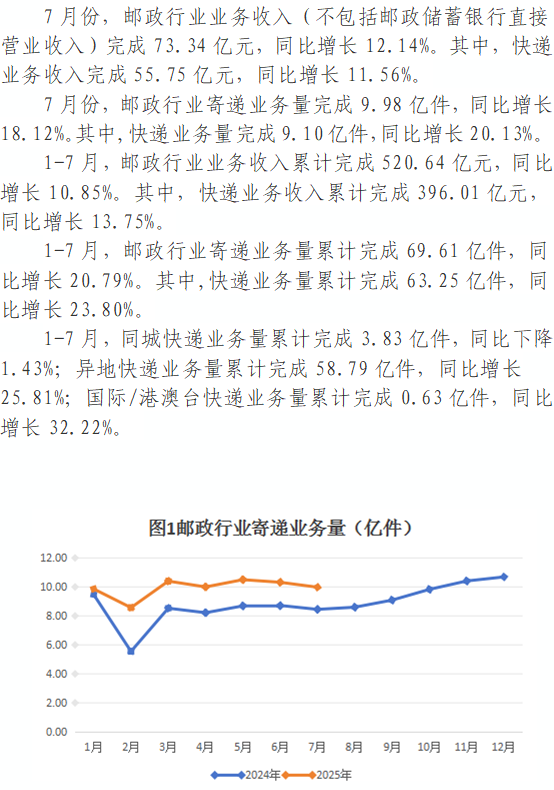 2025年7月彩票博彩网站-usdt博彩网站邮政行业运行情况